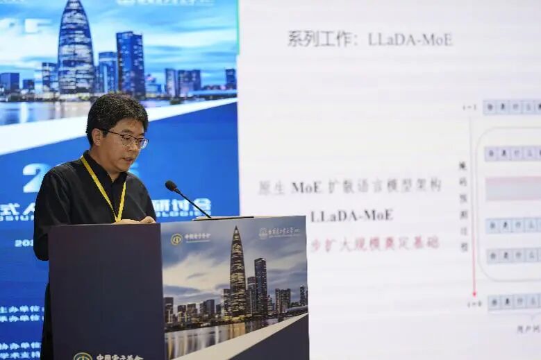 中国人民大学文继荣教授做题为《LLaDA:扩散大语言模型新范式》的报告